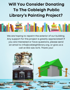 The Cobleigh Public Library is an inviting community center, which provides programs, services, books and materials, public space, and information to all residents in the Lyndon area. The library connects people of all ages with opportunities to explore personal growth and develop a life long love of reading.